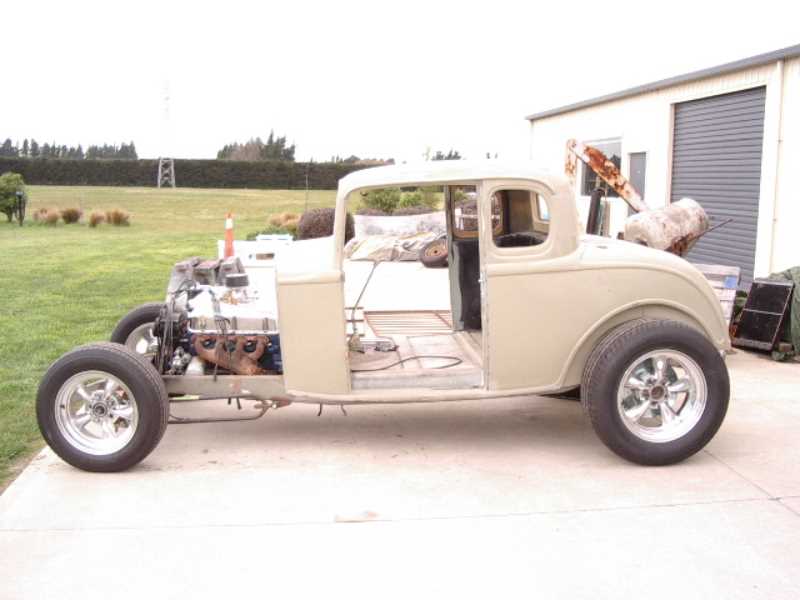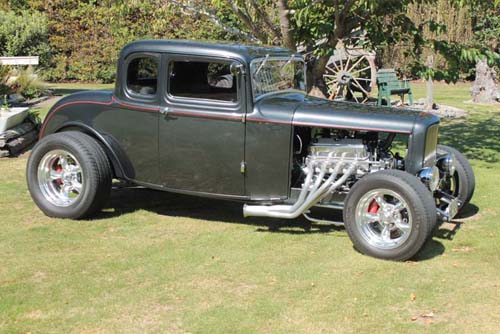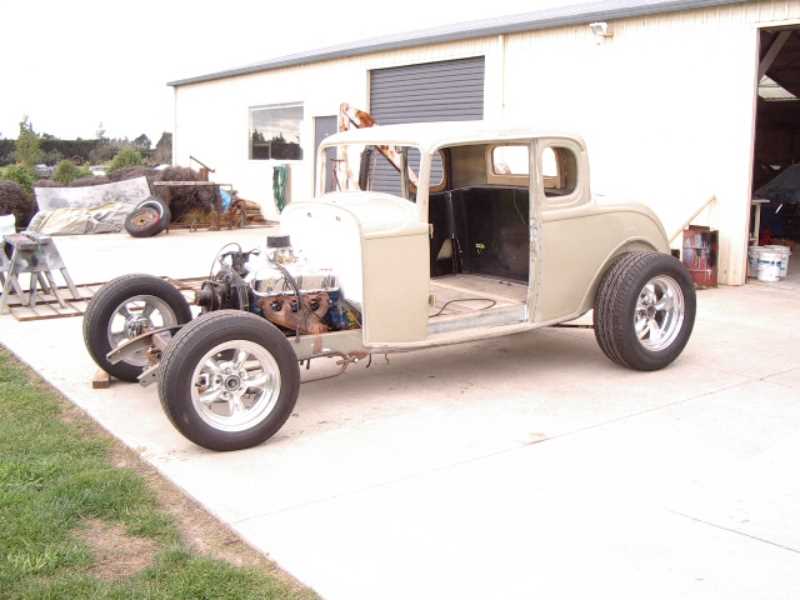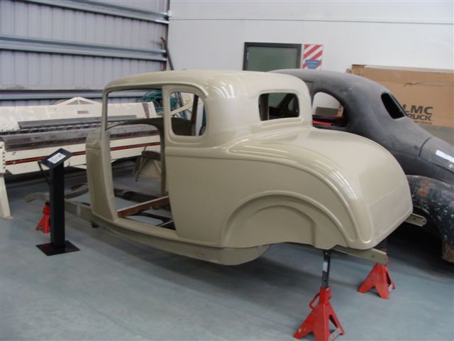 Fibreglass channelled over chassis approximately 80 mm and roof to be chopped approximately 65 mm. All this work to be carried out by Magoo Street Rods.