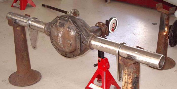 Falcon EL 3.23:1 ratio, narrowed down to 56 ½” (1435 mm), axles cut and re-splined. New billet housing ends machined and fitted to the narrowed housing. Axles fitted with normal ball bearings to allow the fitment of a Wilwood rear brake kit. All diff work to be done in-house by Les Hunter Racing Products.