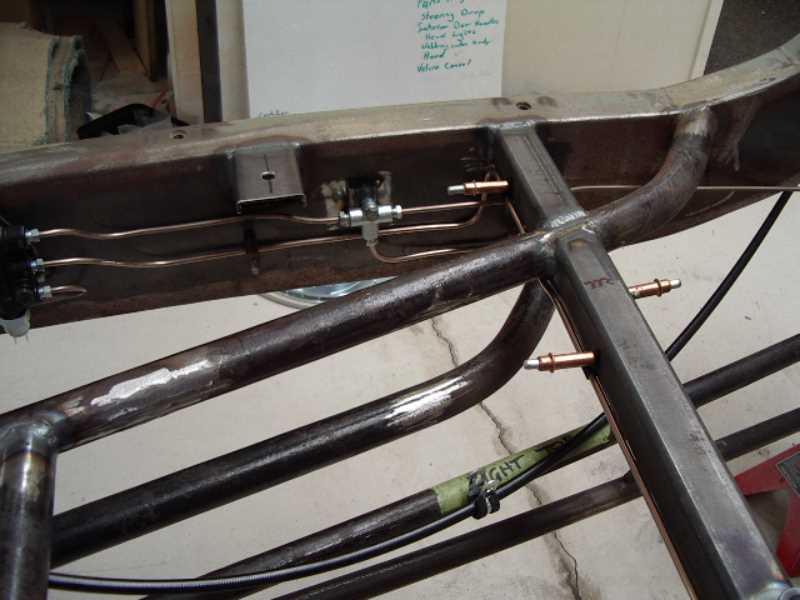 To be an original style reproduction frame rail fully boxed with modern type cross members including engine mounts and gear box mounts. Rear section kicked up to allow for channel of body. This to be built by Magoo Street Rods.